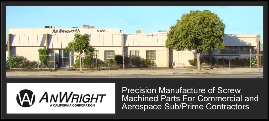 AnWright has been providing precision-machined parts for both the commercial and aerospace industries since 1968. We address a wide range of applications from the very sophisticated, such as aerospace, commercial airlines and computer related industries, to the very simple, including decorative pieces using CNC Screw Machines, computer programs, and a product line of One Piece Tooling Balls. We began as a small unit in a rented one-room shop, 1000 sq. ft. Through hard work we flourished and soon we purchased the adjoining building complex to grow to 15,000 sq. ft. and filled it with over 80 plus machines and 45 employees. Today many of the founding employees are still with us, passing on their expertise to the new generation of AnWright Corporation personnel; thus our philosophy: "Keep our employees well trained and well informed." Because of our consistent manufacturing procedures, customers return to us for their precision parts. We guarantee QUALITY, DELIVERY AND CUSTOMER SATISFACTION for every part that we manufacture. We have earned the status of source delegate and have been placed on such programs as "Dock to Stock" with many customers. We invite you to submit your screw machine, tooling ball or other turning requirements to AnWright Corporation for quotation by Fax, U.S. mail or E-mail; or simply call to discuss your special needs. (See CONTACT page for address and phone numbers.) |